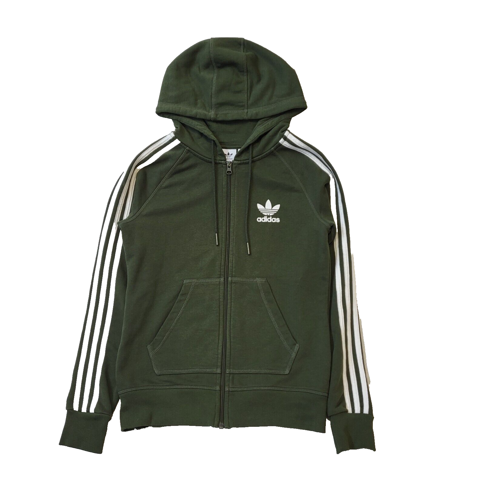 Adidas Green Zipped Drawstring Sweatshirt Hoodie Women's Uk S 8 H280
