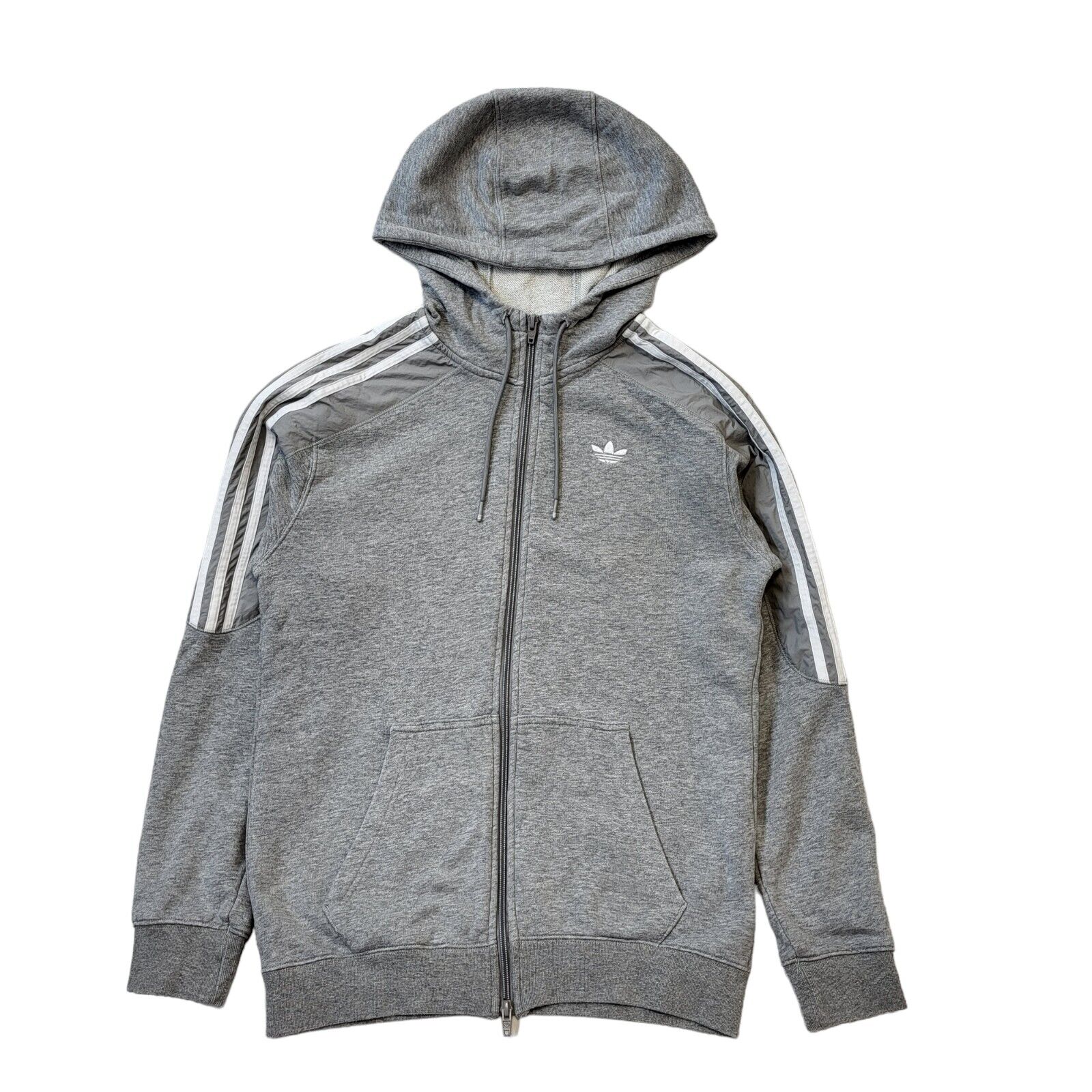 Adidas Grey Drawstring Zipped Sweatshirt Hoodie Uk Men's Small G475