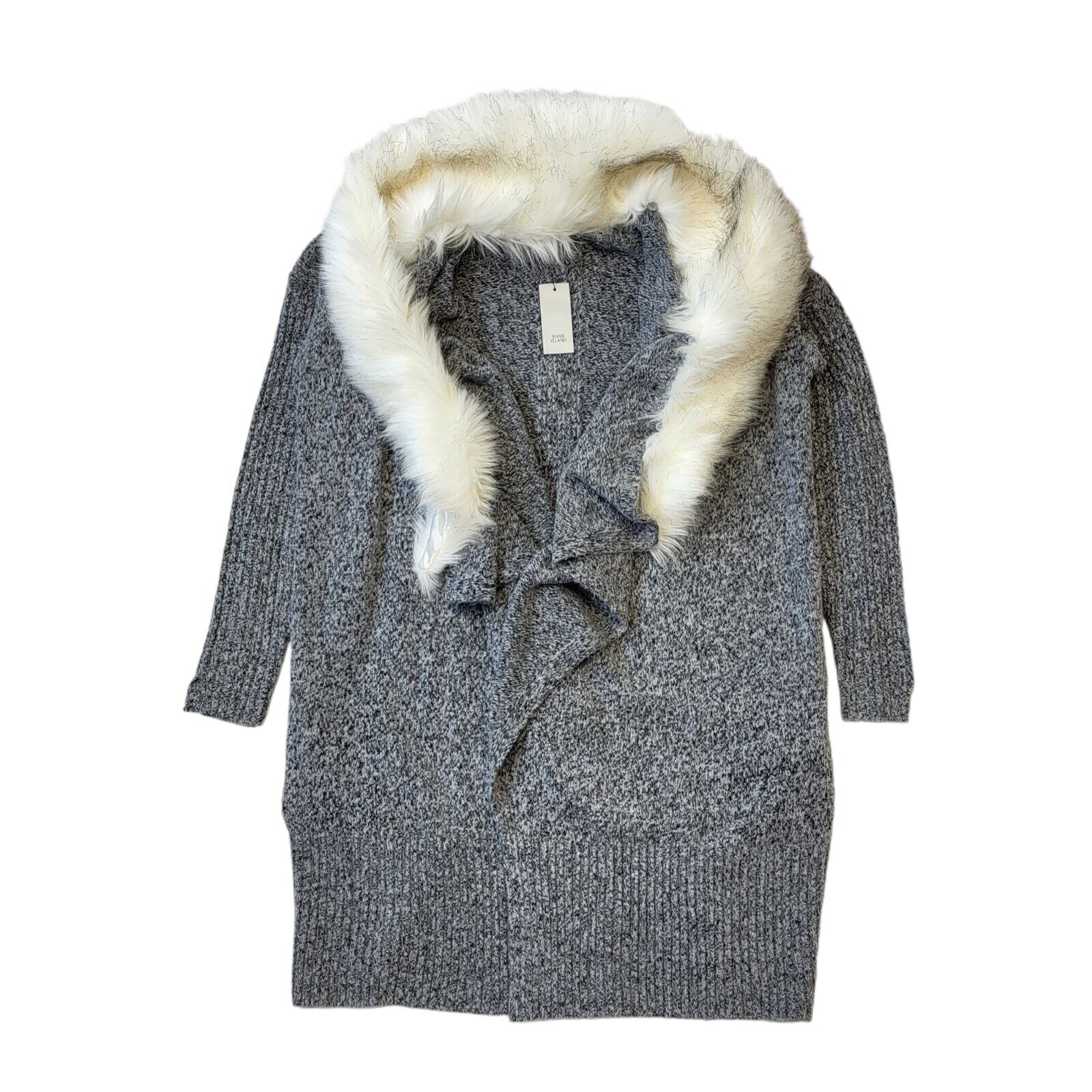 River Island Waterfall Cardigan Grey Fur Trim BNWT Uk Women's Size S G384